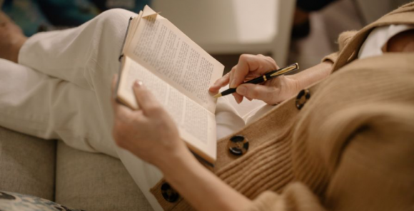 Relaxing at home with a good book